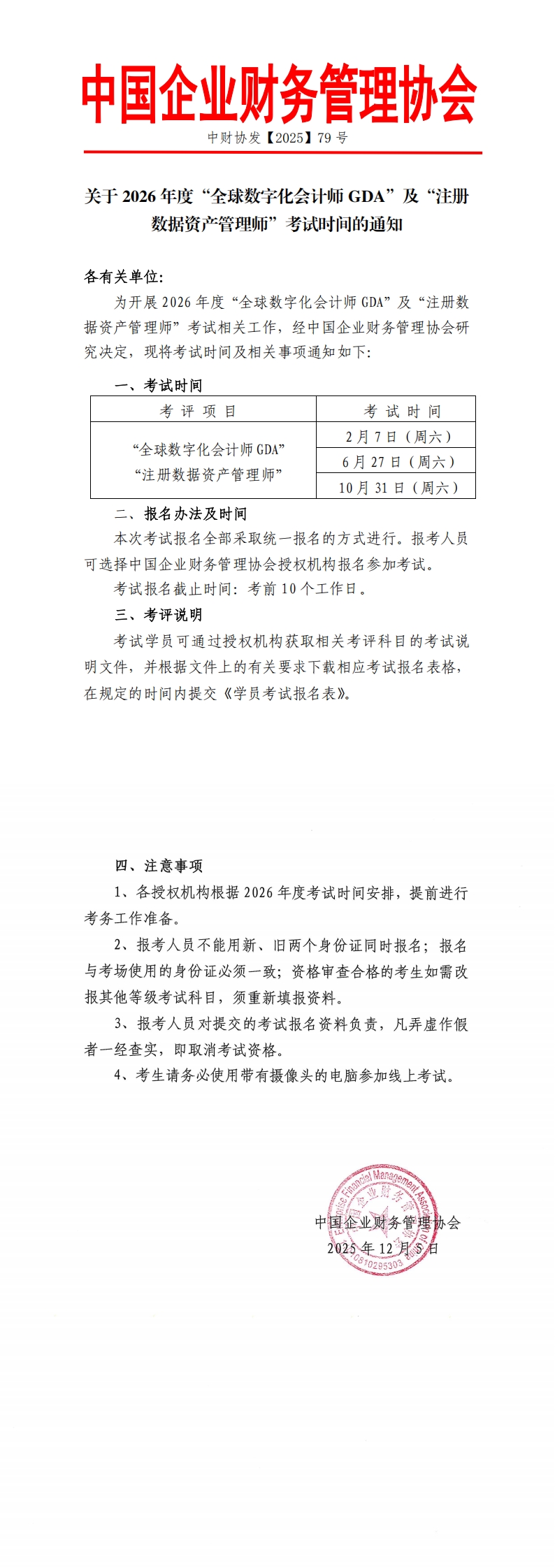 关于2026年度“全球数字化会计师GDA”及“注册数据资产管理师”考试时间的通知