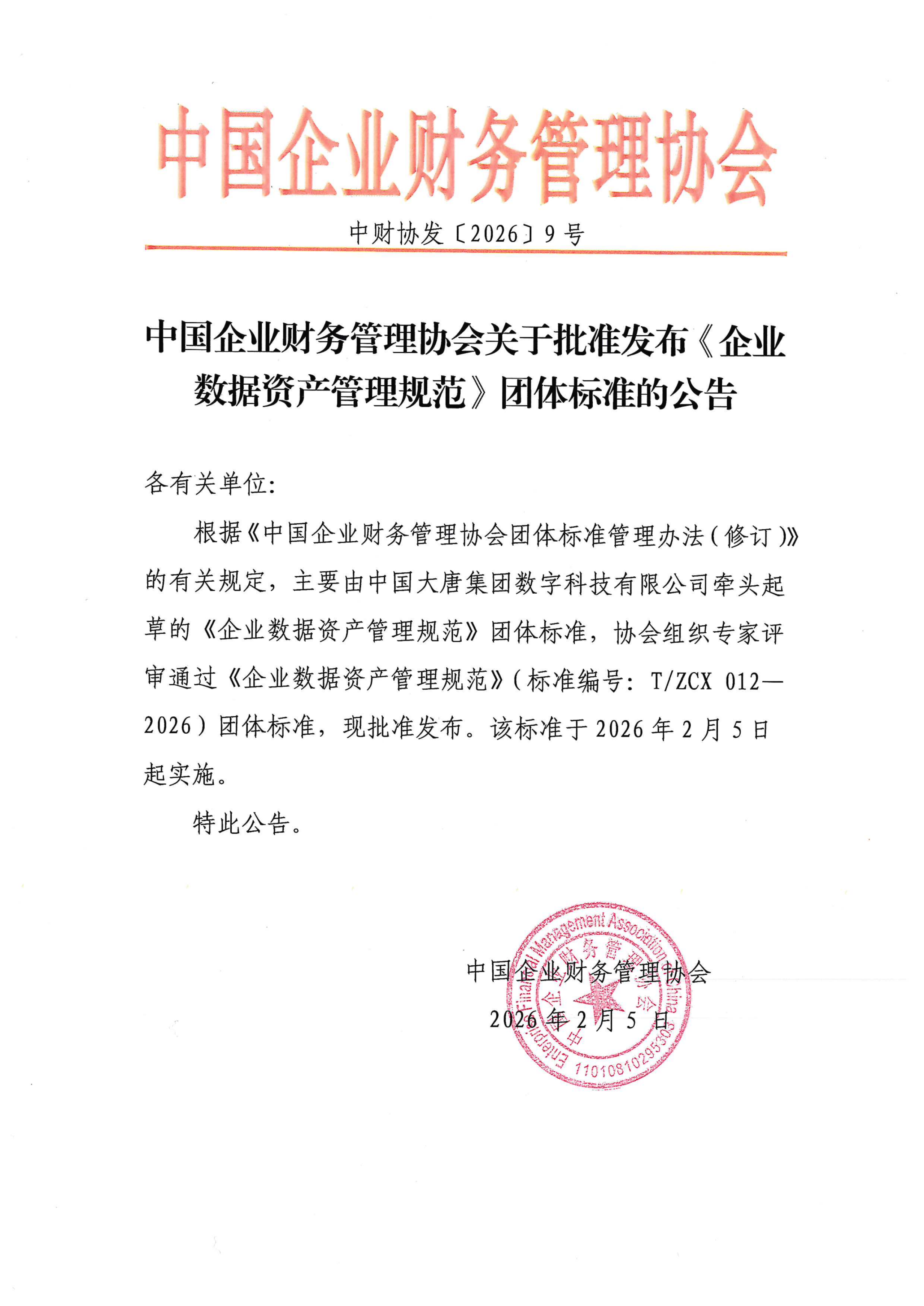 中国企业财务管理协会关于批准发布《企业数据资产管理规范》团体标准的公告