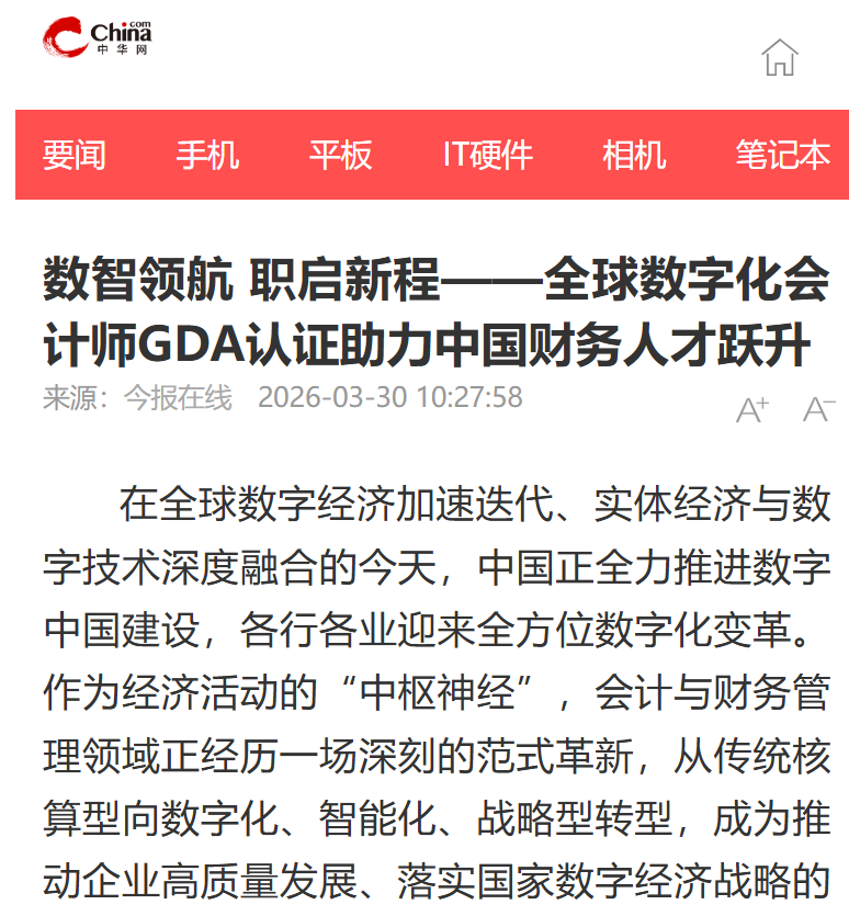 GDA项目自启动以来,始终深度契合国家财务数字化转型与数字人才培养的战略导向,认证体系完全对标《会计信息化发展规划(2021-2025年)》《会计行业人才发展规划(2021-2025年)》中关于“培养复合型数字化会计人才”“国际化高端会计人才”的核心要求,是响应国家数字经济战略、推动财务行业转型的重要实践。