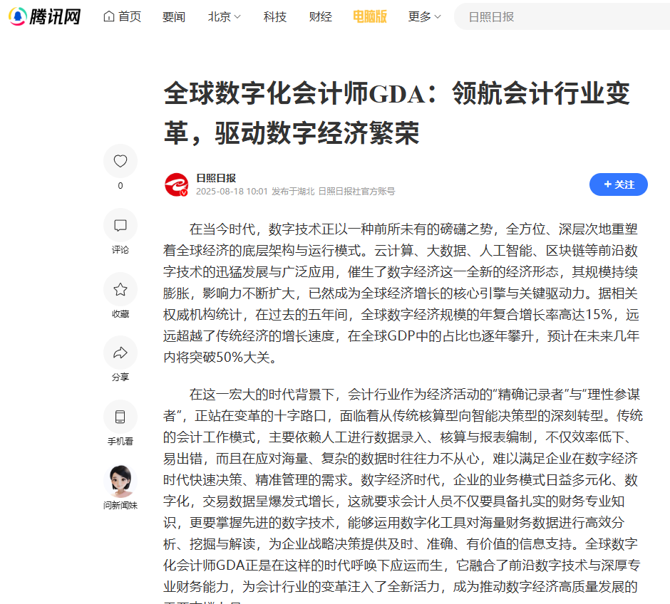 在这一宏大的时代背景下,会计行业作为经济活动的“精确记录者”与“理性参谋者”,正站在变革的十字路口,面临着从传统核算型向智能决策型的深刻转型。传统的会计工作模式,主要依赖人工进行数据录入、核算与报表编制,不仅效率低下、易出错,而且在应对海量、复杂的数据时往往力不从心,难以满足企业在数字经济时代快速决策、精准管理的需求。数字经济时代,企业的业务模式日益多元化、数字化,交易数据呈爆发式增长,这就要求会计人员不仅要具备扎实的财务专业知识,更要掌握先进的数字技术,能够运用数字化工具对海量财务数据进行高效分析、挖掘与解读,为企业战略决策提供及时、准确、有价值的信息支持。全球数字化会计师GDA正是在这样的时代呼唤下应运而生,它融合了前沿数字技术与深厚专业财务能力,为会计行业的变革注入了全新活力,成为推动数字经济高质量发展的重要支撑力量。